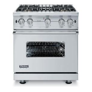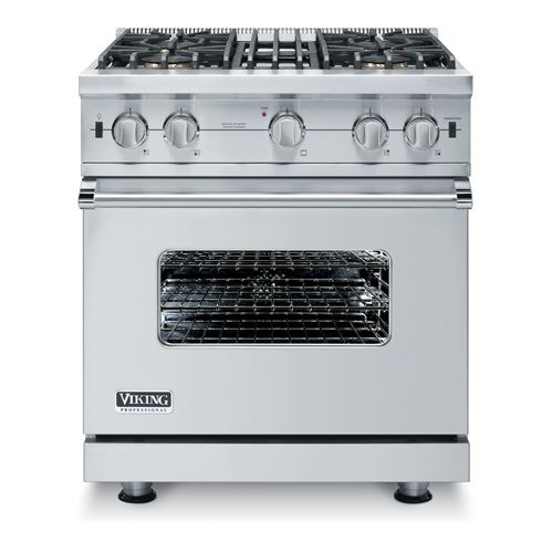 Viking Professional gasfornuis 30″ (75,9 cm) met 4 branders, professionele gas-geventileerde oven en infrarood gasgrill.