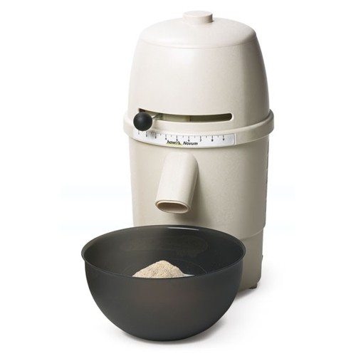 De graanmolens van het Duitse merk Hawos zijn inmiddels een begrip. Model Novum is speciaal ontwikkeld voor intensief thuisgebruik. De machine is uitgevoerd in een zeer sterke, eigentijdse behuizing (wit met een transparant blauwe kap - afbeelding wijkt af)